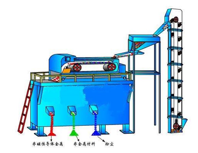【適用物料】城市生活垃圾、工業垃圾廢料、電子廢棄物、玻璃碎料、廢舊塑料門窗、城市木質廢物、鍋爐底灰、多種金屬混合物、廢汽車(經撕碎機切片后)銅、鋁等